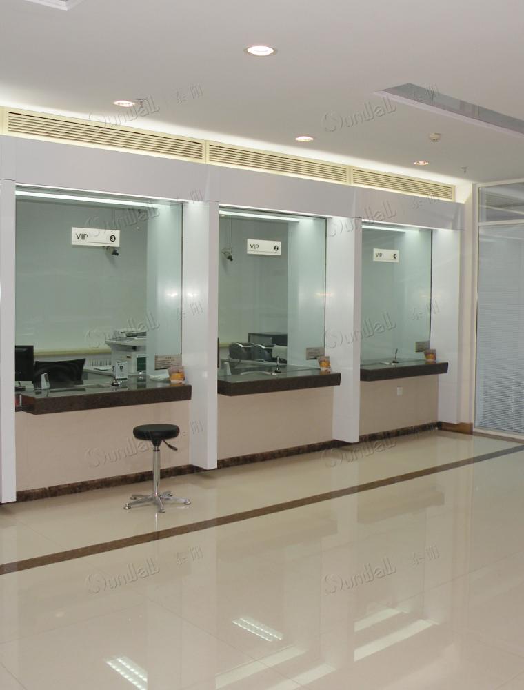 设计采用透明钢化玻璃的立面处理方式。整体效果极富设计感。为银行增添了不少现代化和高科技的装饰元素。
