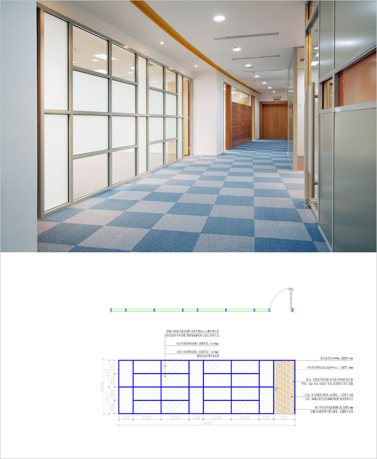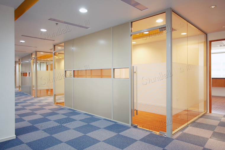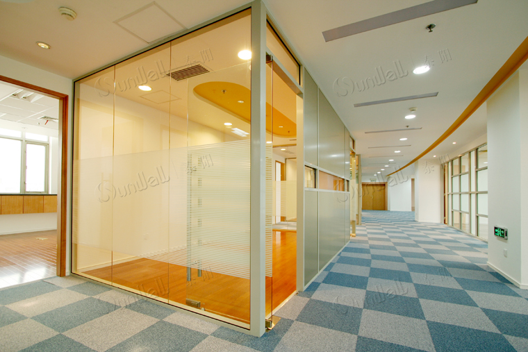 玻璃隔断充分保证了办公区域内的采光,使整个室内环境呈现出通透、精致和时尚的装饰和使用效果。
