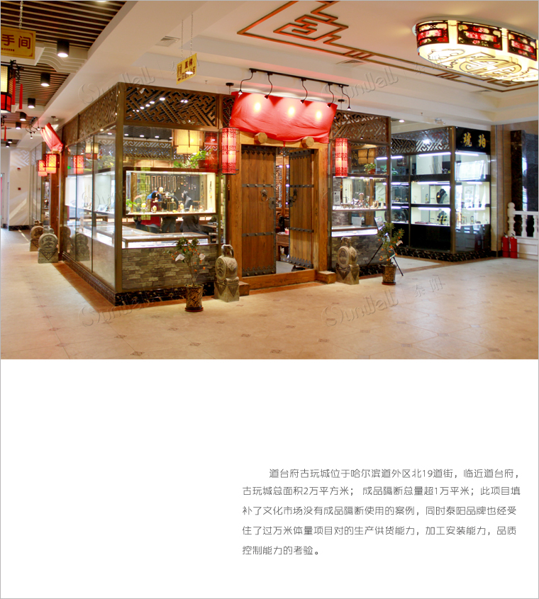 项目名称:道台府古玩城钢化玻璃隔断工程