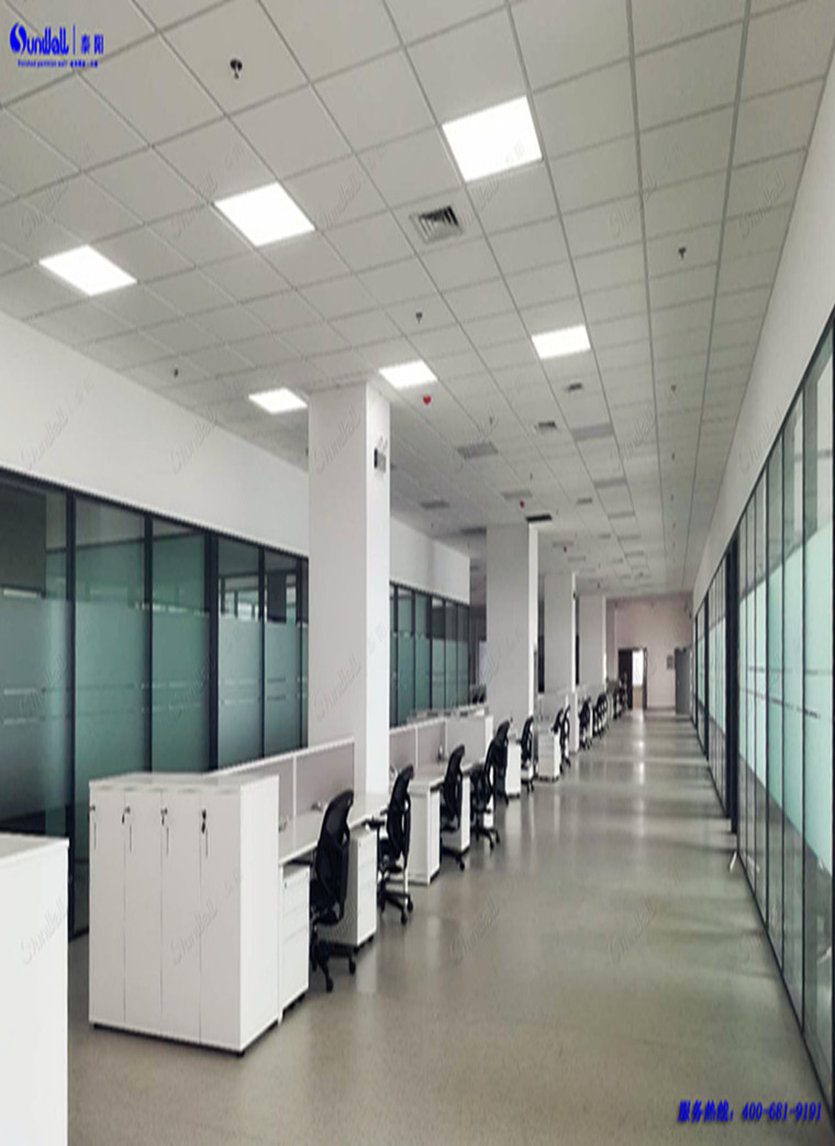 该项目选用泰阳品牌双玻局部背漆形式玻璃隔断,防火功能与钢化相结合,既满足了安全性又具备耐用性,整理设计大气庄重,功能性与美观并存。