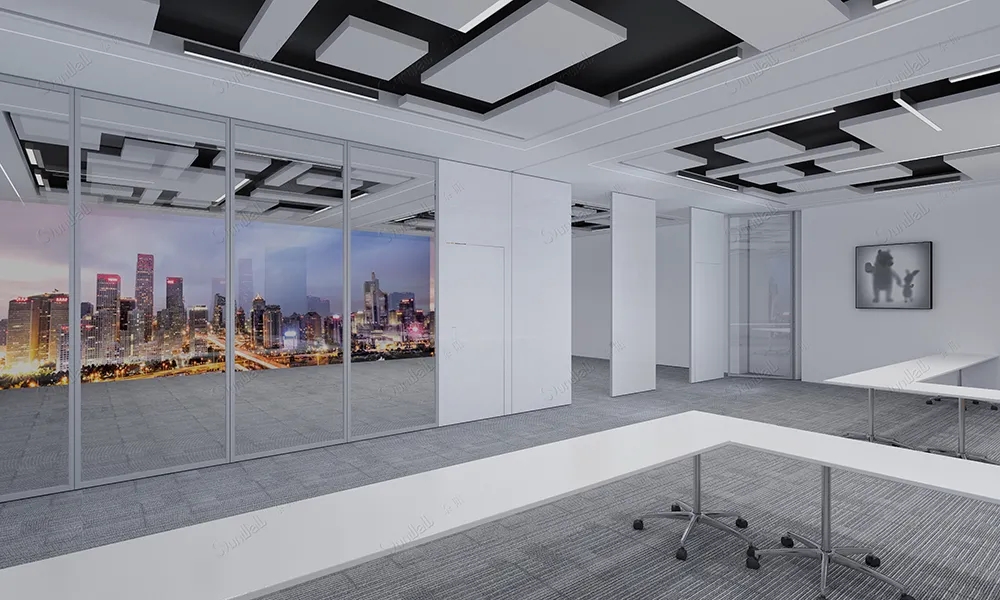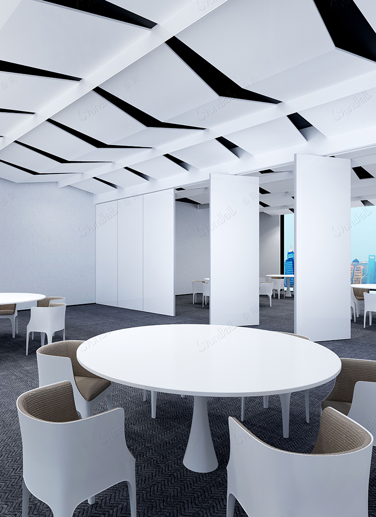活动隔断系统是一种通过预装吊轨与滑轮实现墙体的移动,且具有一般墙体功能的活动墙。可根据需要随时把大空间分割成小空间,同时又能很方便的将小空间扩展成大空间,能起到一厅多能,一房多用的作用;应用范围广泛。