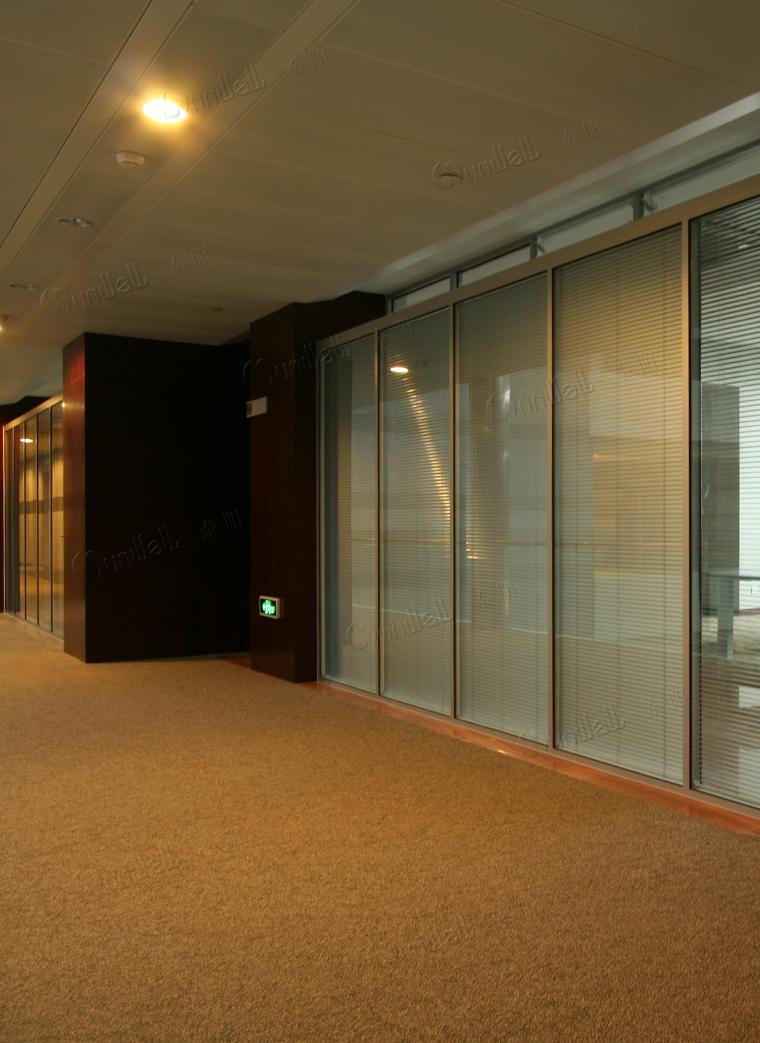 项目立面选用泰阳双玻加内置百叶的明框处理方式。整个内部分隔墙通过框架结构组合,既满足了抗侧撞击、隔音、防火和环保等各项建筑物理性能,又保证了各个房间的私密性。这样的设计理念是现代化办公环境装饰的必然趋势,也是泰阳产品的主要特点。