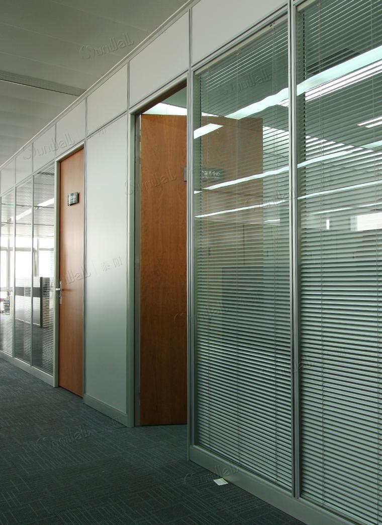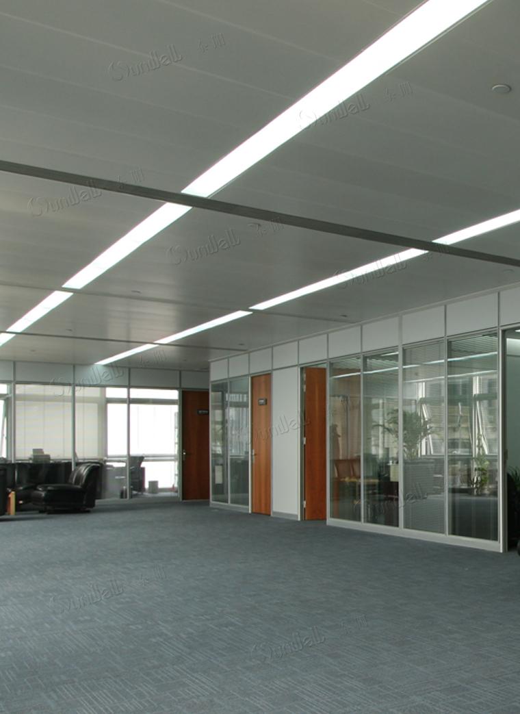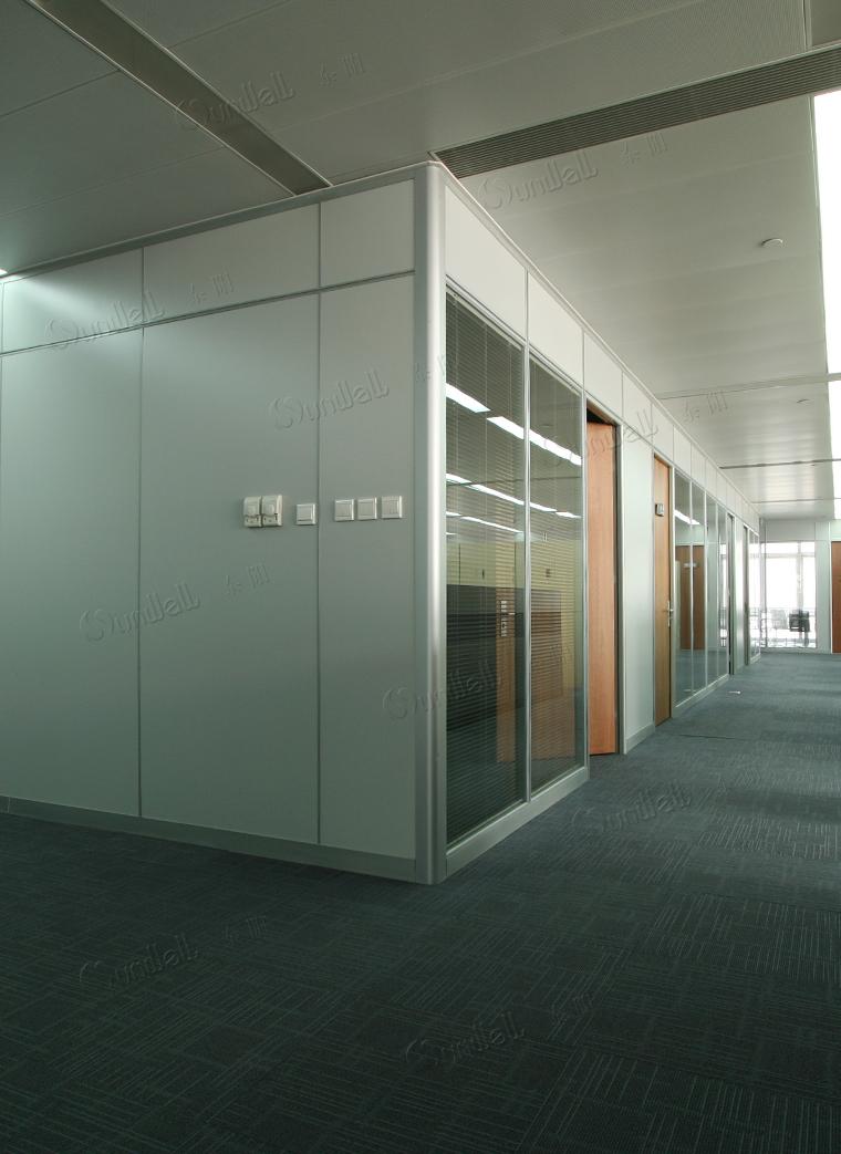 项目采用泰阳super1080款单玻一侧成品隔断墙。由铝型材、单层安全玻璃为立面的隔断墙,完全满足了业主对整个办公空间能充分引入自然光,并使内部各分隔有良好隔声效果的要求。这也能促进并更多满足现代企业内部管理的需要。
